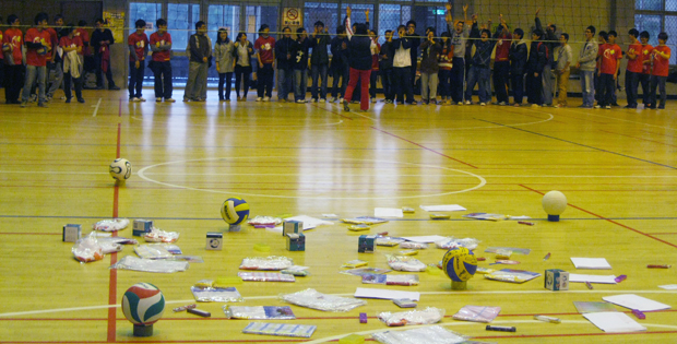競賽規則為每人發一球,將球成功發到對面場,落地時直接打中散佈的獎品,就可將獎品帶回家,獎品內容包括排球數顆、衣服、毛巾等,讓現場師生躍躍欲試,期待能抱回大獎。參與此活動的陳姓同學說:「很難得有這樣的活動,能展現自己的發球功力,又有獎品可以拿,一定要來試一試。」