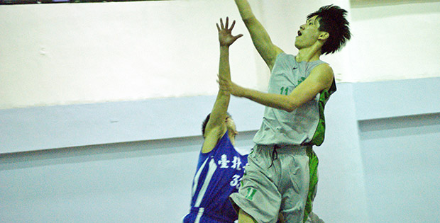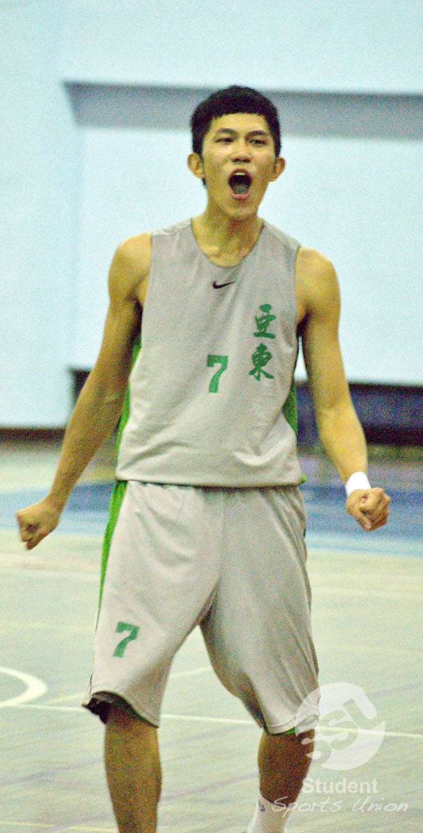 亞東范志雲在投進三分球後,以吶喊宣洩壓力。