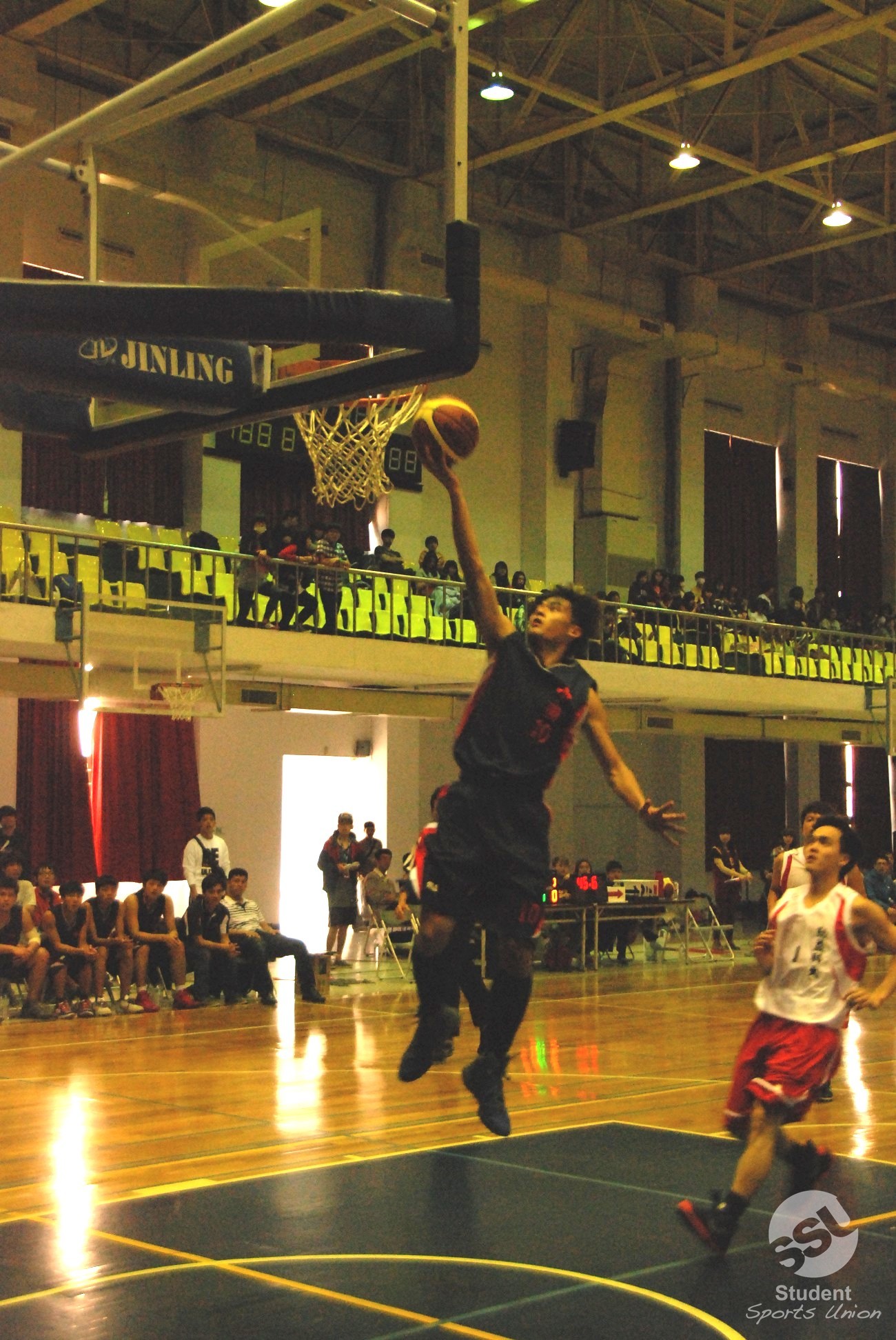 上半場開打,雙方得分皆不多,中國醫靠著王銘範及林桂名的得分取得領先,在籃板的掌控上也略勝對手,反觀勤益,在後頭苦苦追趕,使得比數僅相差個位數,上半場結束,中國醫大以21:17小幅領先。
