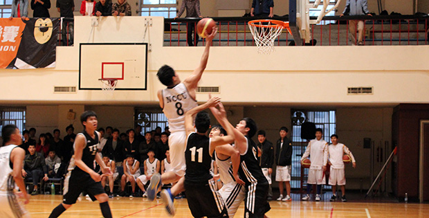 上半場大同大學許力猷率先投進兩分球,然而政治大學大也不願掛零,政治大學陳毅隨即三分,使得全隊氣勢高昂,但是,政大仍無法抵抗大同大學上半場的攻勢,最終,26:18大同大學以8分領先,結束上半場。