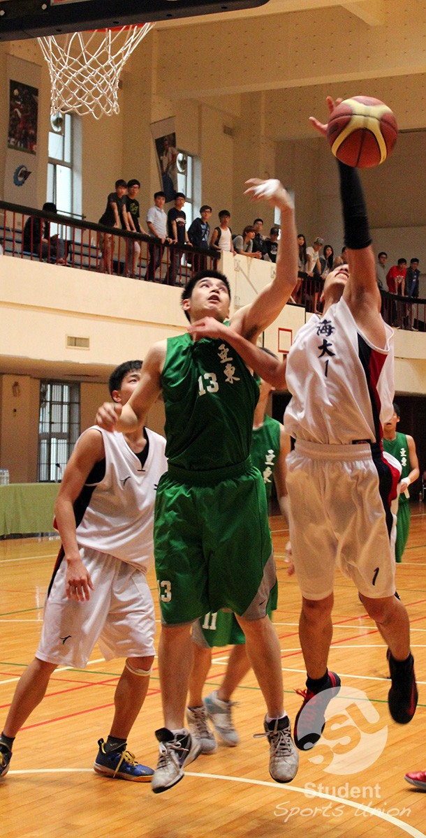 上半場一開場兩隊拚得你死我活,亞東一得分,海大就隨即補上兩分,讓兩隊一直在平手的狀態下,使得整場球賽的緊張度節節攀升,但亞東仍在上半場取得28:30的兩分領先。
