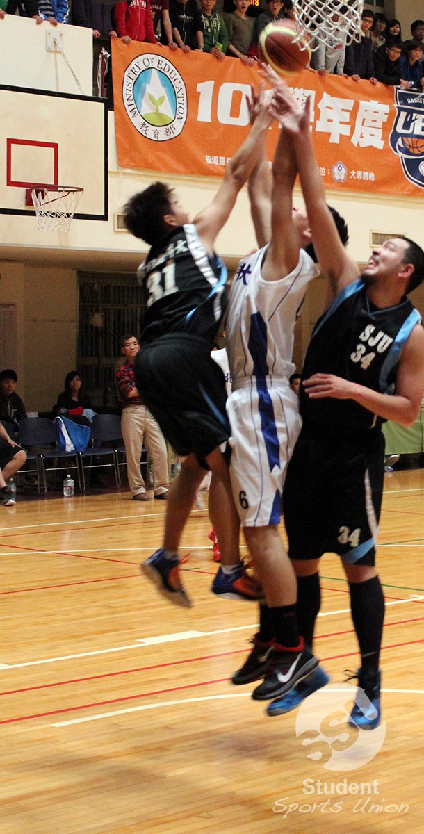 下半場才一開始,臺北科大吳建樺馬上外線三分,頓時整場的觀眾熱血沸騰,加油聲四起,帶著地主隊的優勢,聖約翰雖努力防守臺北科大猛烈攻勢,臺北科大一路全場壓迫,使得聖約翰不易得分,當終場鈴響起,場邊觀眾尖叫歡呼,臺北科大以88:55輕取聖約翰,贏的比賽。