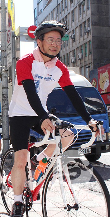 何署長以及呂副組長和南區學員一早八點半,從台北教師會館出發,行經輔仁大學,騎向桃園火車站。何署長自出發開始,就始終保持在領騎位置。騎乘上坡路段時,也表現得相當自在,顯示他的體能及腳力狀態都不錯。「我每周都會打5個小時羽毛球,腳力訓練足夠,所以今天的距離對我來說是小case。