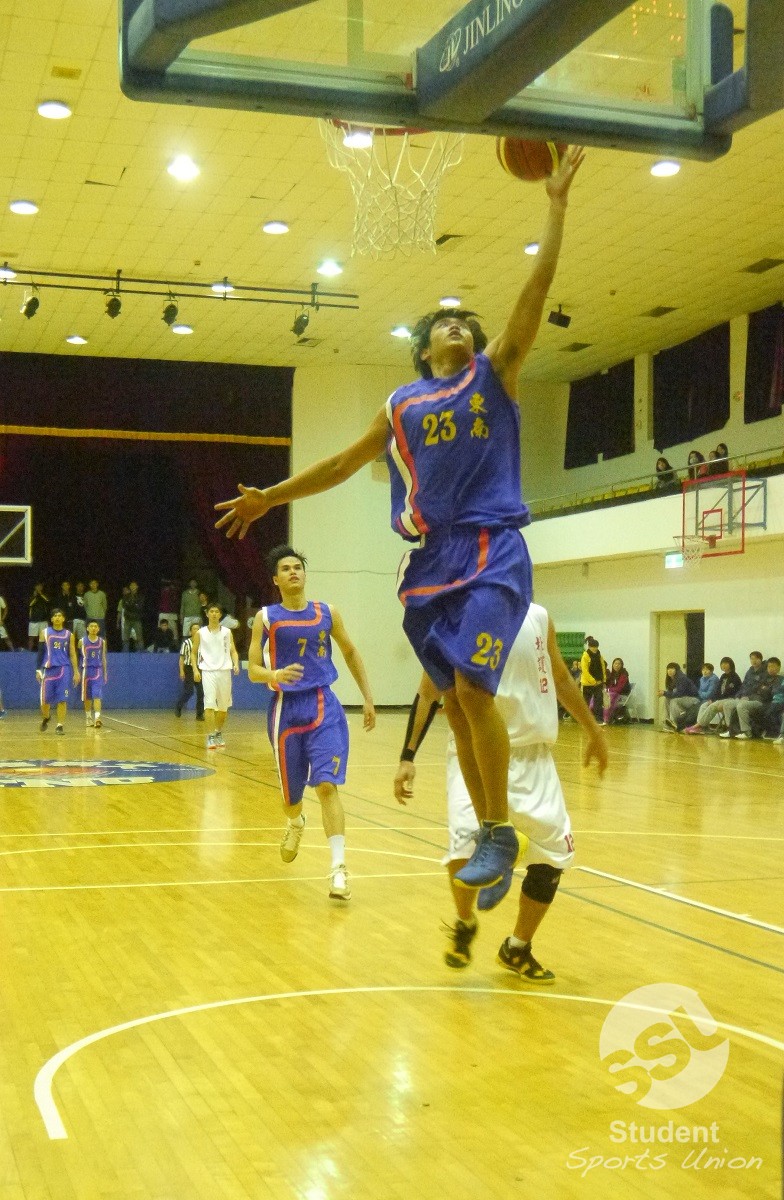 到了第三節,東南的防守開始較為鬆懈,北護見機不可失,展開流暢的攻勢,一度將比分拉近到相差十多分,可惜東南氣勢不退,狂風般的攻勢又將分數拉開。而第四節北護的團犯迅速累積,頻頻送東南上罰球線,而東南也把握這個機會持續拿分,終場倒數前還以一顆再見三分球將分數破百,一旁板凳席都跳起來歡呼,比賽最後以100:73做結,東南順利拿下預賽的第三場勝利。