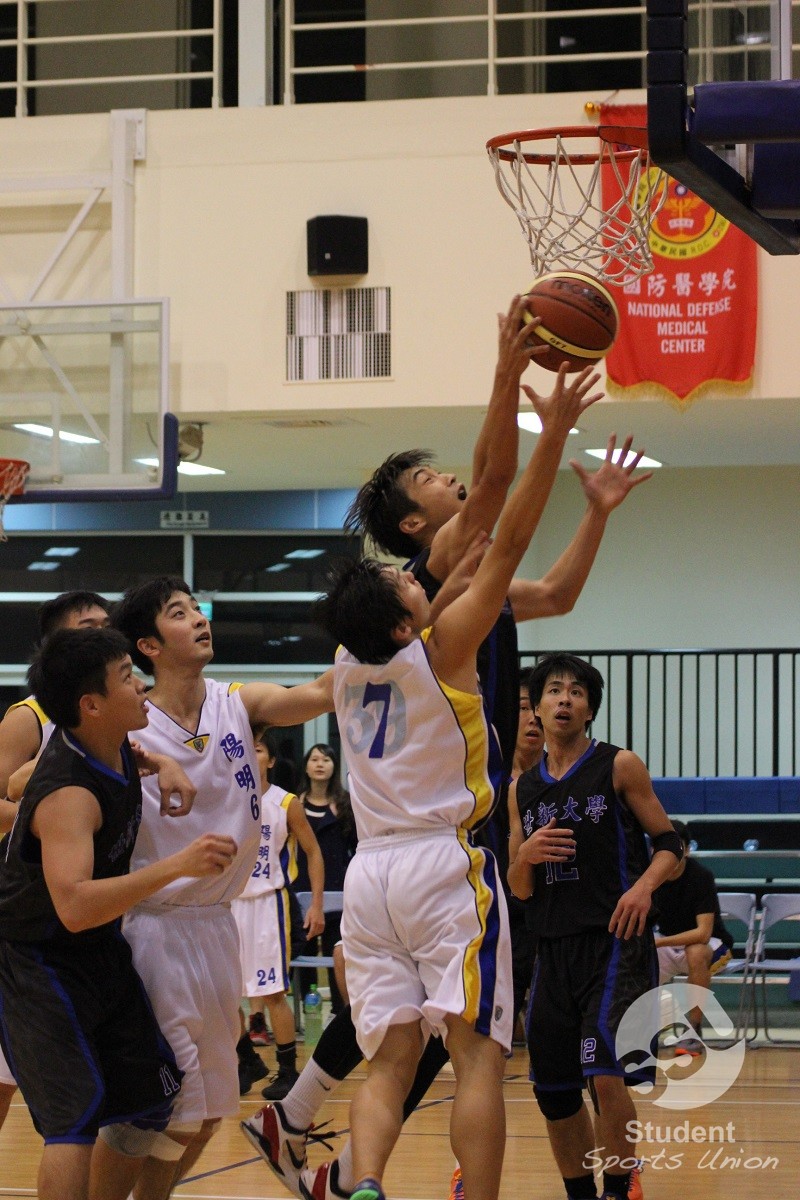 前兩節雙方展開拉鋸,半場陽明以22:23落後;易籃後,世新失誤不斷,陽明在主力劉冠甫帶領下,成功在第三節把差距拉開到10分;末節世新雖全力反撲,但仍無力回天,陽明以14分的差距嬴得比賽,成為分組第三名。
