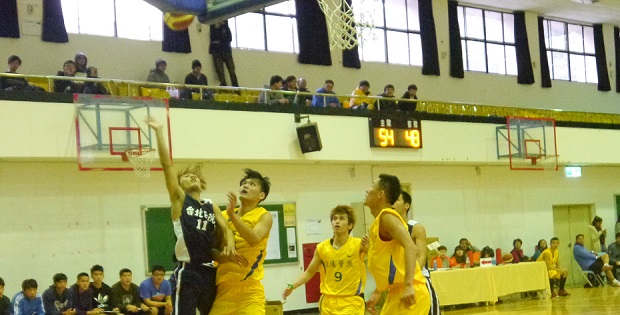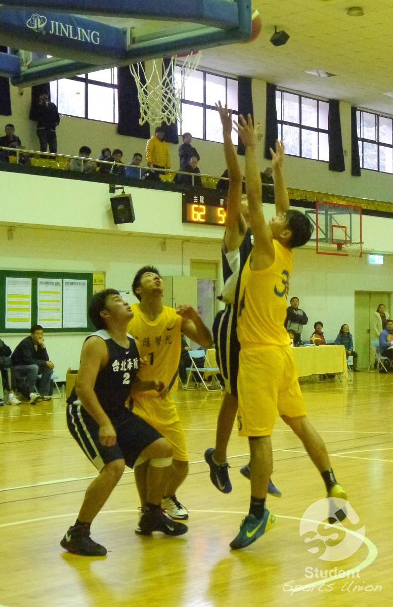 蘭陽學院與臺北海院球員爭搶籃板球。