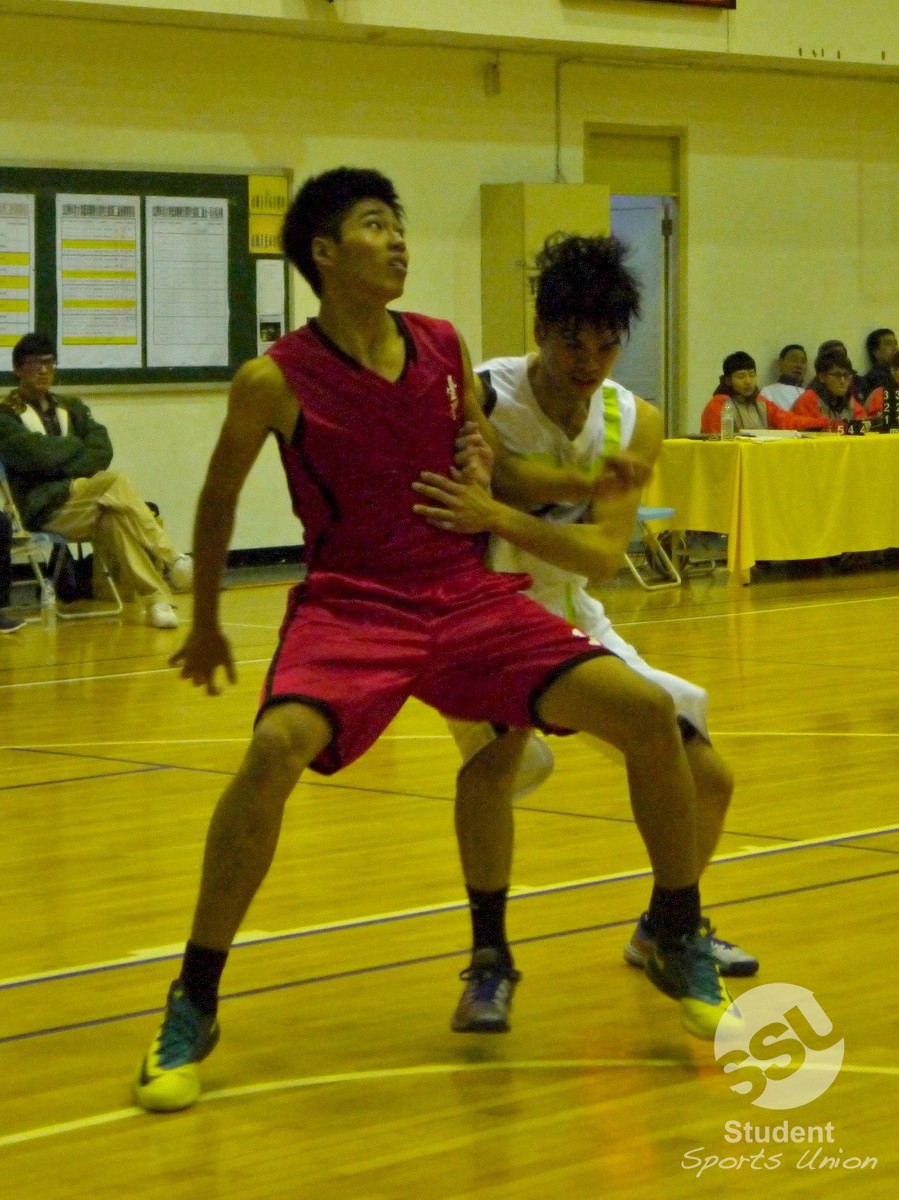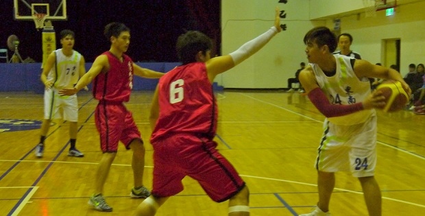 臺大劉人豪(左)及東南向鵬安(右)卡位激烈。