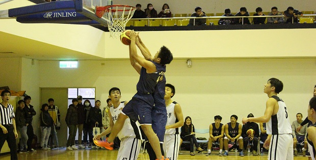 景文和北大爭搶籃板球。