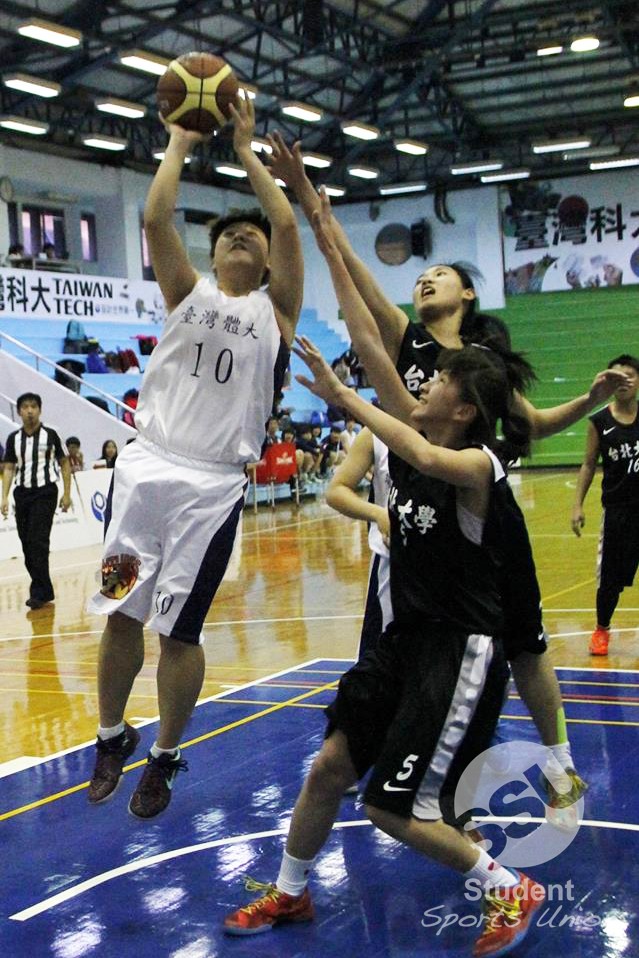 臺體大球員江雅慈強攻籃下,本場貢獻28分。
