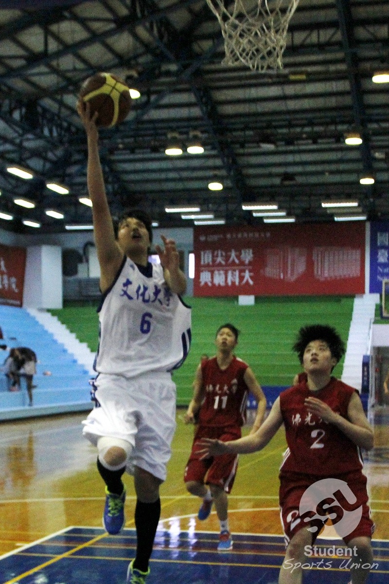 易籃之後,文化依然沒有給佛光太多得分機會,林育庭、羅巧惠與鄭伊秀接連切入得分,再加上三不五時就在外線放冷箭的射手陳采炘,雖然佛光籃球小精靈黃郁婷好幾次漂亮的空檔進攻,中鋒何虹德死守籃下也有不錯的表現,可惜到了第四節,佛光選手體力亮起紅燈,命中率逐漸下滑,文化的攻勢卻依然猛烈,終場文化就以83:50,共33分的差距,擊敗佛光,拿下複賽三連勝,以預、複賽合計八連勝的不敗之姿繼續邁進。