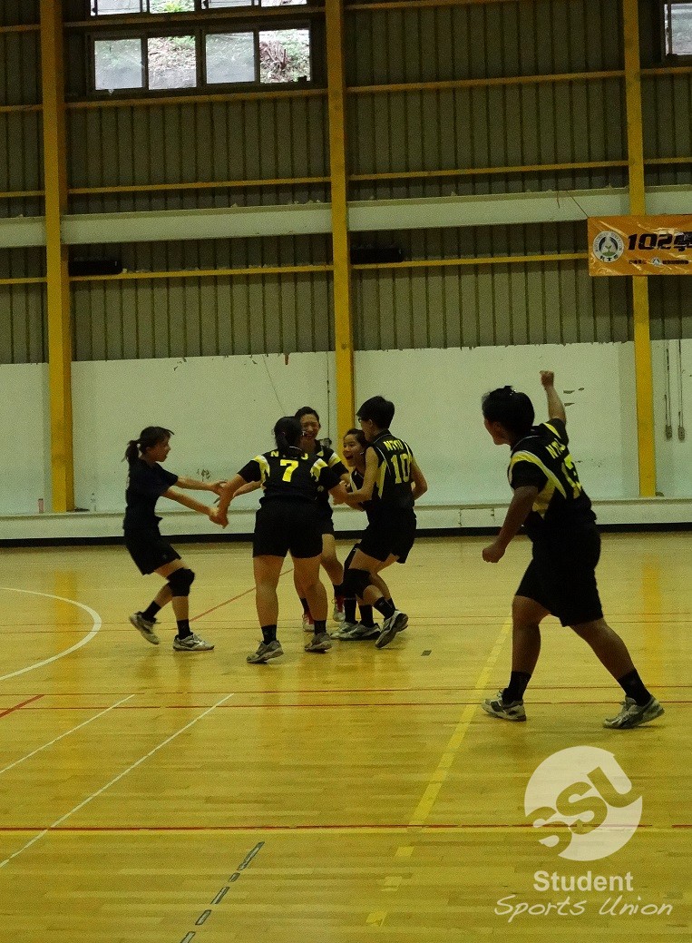 第三局臺中教大展現較穩定的攻守,將比分差距拉大許多;雖然高醫沒有放棄任何一球,韌性十足的演出,讓人看了熱血沸騰,可惜仍不敵對手。決勝第四局,臺中教大靠著攻擊雙箭頭-呂蕙苓和陳珮紋,打下不少分數,但在失誤率偏高的情況下,沒能一舉拉開分差,被高醫一路緊咬不放。在比賽打至24: 19,臺中教大只差1分就能贏球時,高醫還連拿3分,追到22:24,可惜最後的攻擊機會發生失誤,讓臺中教大連拿三局,以3:1贏得決賽第一勝。