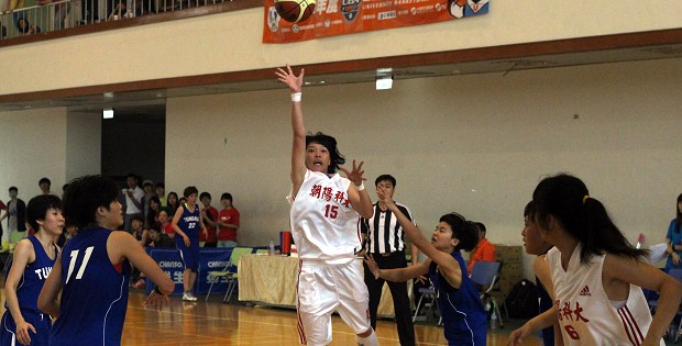 102學年度大專籃球聯賽一般女子組全國決賽今(28)日進行八強賽,於僑光科技大學舉行的第一場比賽就是由第三區的冠、亞軍,朝陽科技大學與東海大學再度碰頭;上次在分區冠軍戰以20分以上差距落敗的東海大學,這次不敢再掉以輕心,徹底研究朝陽的陣型、打法,準備一雪前恥,雙方纏鬥了四節後,朝陽仍以8分之差,54:46擊敗來勢洶洶的東海大學,前進四強。