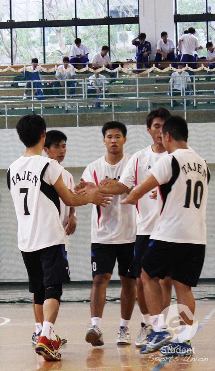 大仁科大一開賽就打出10比4的開局,加上文化失誤過多,接球默契上也出了問題,讓大仁科大以15分之差拿下首局。次局大仁科大靠著江天祐、吳柏興優異的攻擊以25:15拿下。第三局文化避免遭橫掃,一度以7:6領先,但中段大仁科大江天祐連發6球,又將比分拉開,最後靠著方勤元扣殺後拿下比賽。