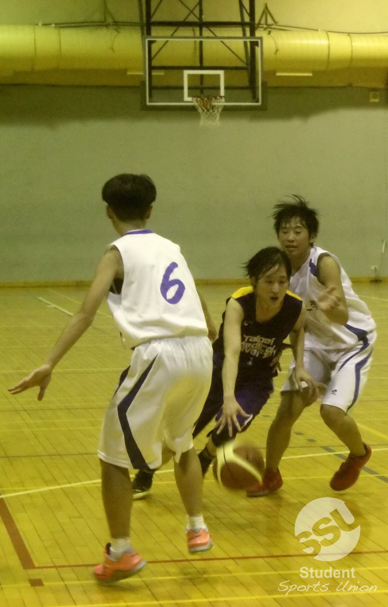 末節,依然由劉芷筠率先砍下一顆三分線,替北醫開張,團隊士氣因此大為提升;反觀世新,多次失誤造成北醫打了一波6:0的攻勢,世新馬上喊出暫停,但仍未見起色。林家誼、張庭芳兩人把握住每一次得分機會,繼續抓著空檔積極切入得分,七分鐘內,兩人替球隊拿下18分的成績。四節終了,北醫以63:53十分之差帶走勝利。