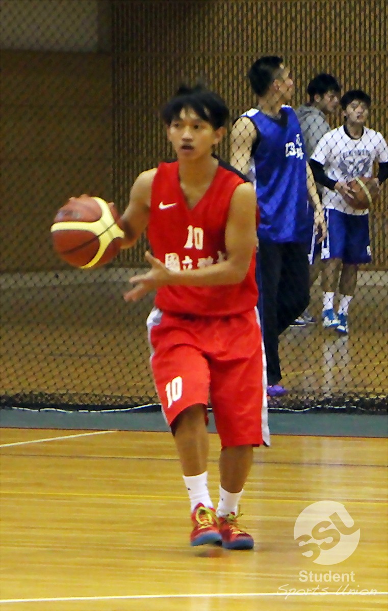 甫開賽,雙方打得難分難解,先打出一波6:6的平手,但接下來的幾波進攻,玄奘在處理球上過於急躁,接連發生幾次的走步違例,因而中斷他們攻勢;反觀國體大,幾波穩穩的進攻,無論速度和球的傳導皆有效發揮,漸漸地將比分拉大,上半場後半段,國體大隊長孫毅因一次的爭搶球動作過大,而被吹了技術犯規,將對手送上罰球線得分,此時國體大教練楊子賢,也立刻將孫毅換下場,而替補上場的大一新秀後衛劉宇傑,在上半場結束前投進一顆關鍵三分球,順利的將比分拉開到53:42。