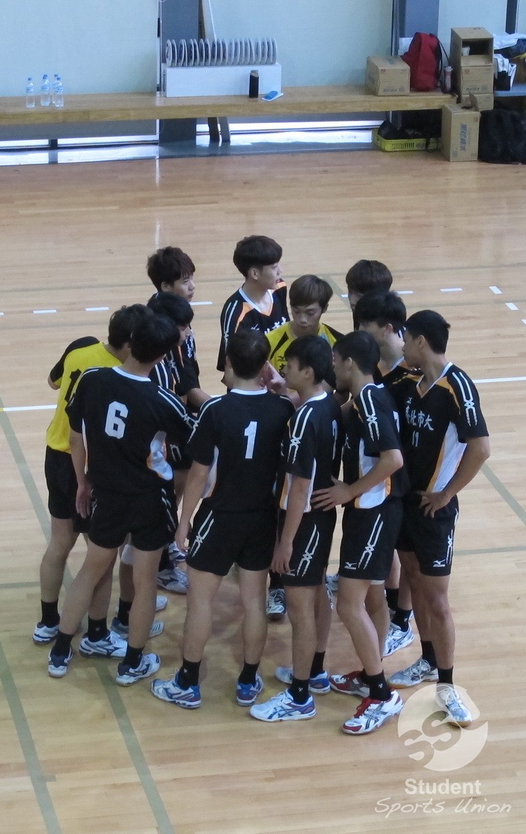 首局一開戰,雙方你來我比,每一球都僵持很久,大仁科大靠著大砲手吳柏興頻頻攻擊得分使得北市大無力攔阻,而北市大在攻擊也不妨多讓,攻擊手陳哲明也在此局攻擊上拿下6分,最後在北市大阮上軒攻擊得分,以25:23拿下第一局。