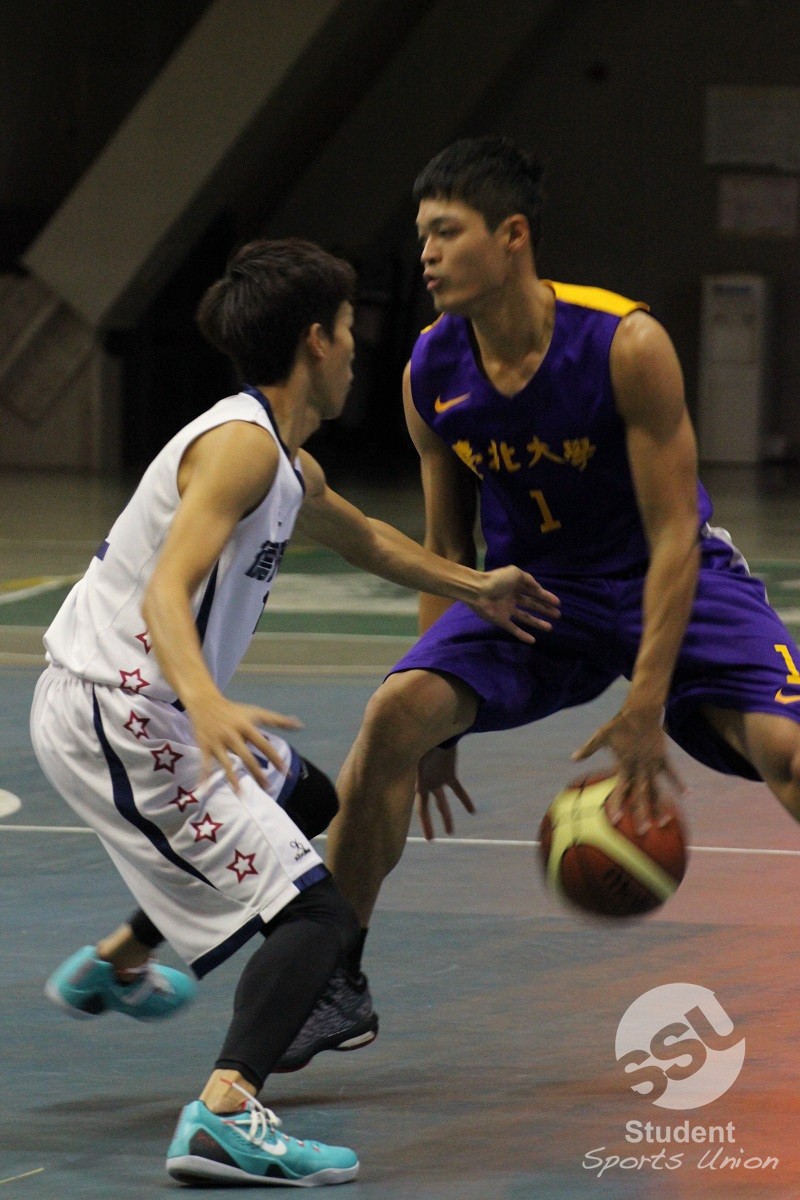 103學年度大專籃球聯賽北二區分區決賽,首日採單淘汰制,由國立臺北大學對上德明財經科技大學,北大自首節便取得領先,雖然一度被德明從20分差追近至10分差,但在李効輯和徐傳昇聯手強攻63分的情形下,穩守勝利,終場北大以105:71贏下比賽,而德明則面臨淘汰。