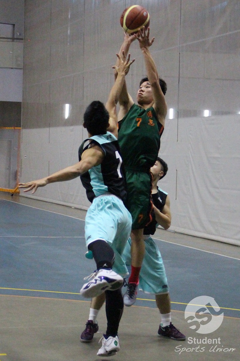 上半場明志科大就占了上風,第一節更是砍下三顆三分球,整隊士氣瞬間高漲到最高點,大同大學也不遑多讓,也有兩顆三分球,整場比賽的氣氛緊張萬分,上半場37:30明志科大以七分領先。