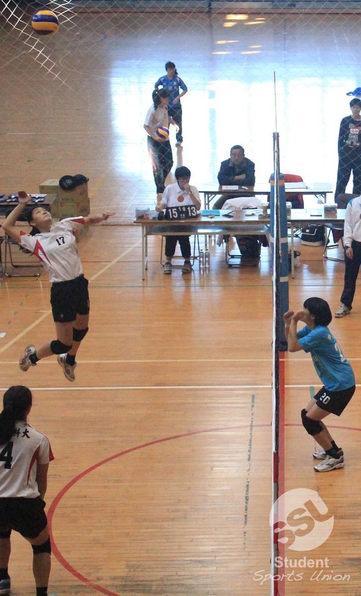 三局剛剛開賽中正大學氣勢如虹,黃品瑜連續兩次在四號位攻擊得分,接著幾球的攻舉搭配,將比分拉開至6:3,隨後中科徐靖婷在網前撂球得分後終於取得球權,可惜仍被自己場內的失誤影響腳步,讓中正取得6分的領先,教練李建平緊急喊停,中科徐靖婷、王韻涵的雙人攔網奏效後,將比分追至剩3分差,不料孫藝慈連續幾顆四號位攻擊皆被中正防守下來,最後靠著徐靖婷的快攻替中科追平比分,局末雙方打得難分難捨,皆是受自己隊上的失誤所苦,但最後還是讓中科先馳得點,拿下勝利。