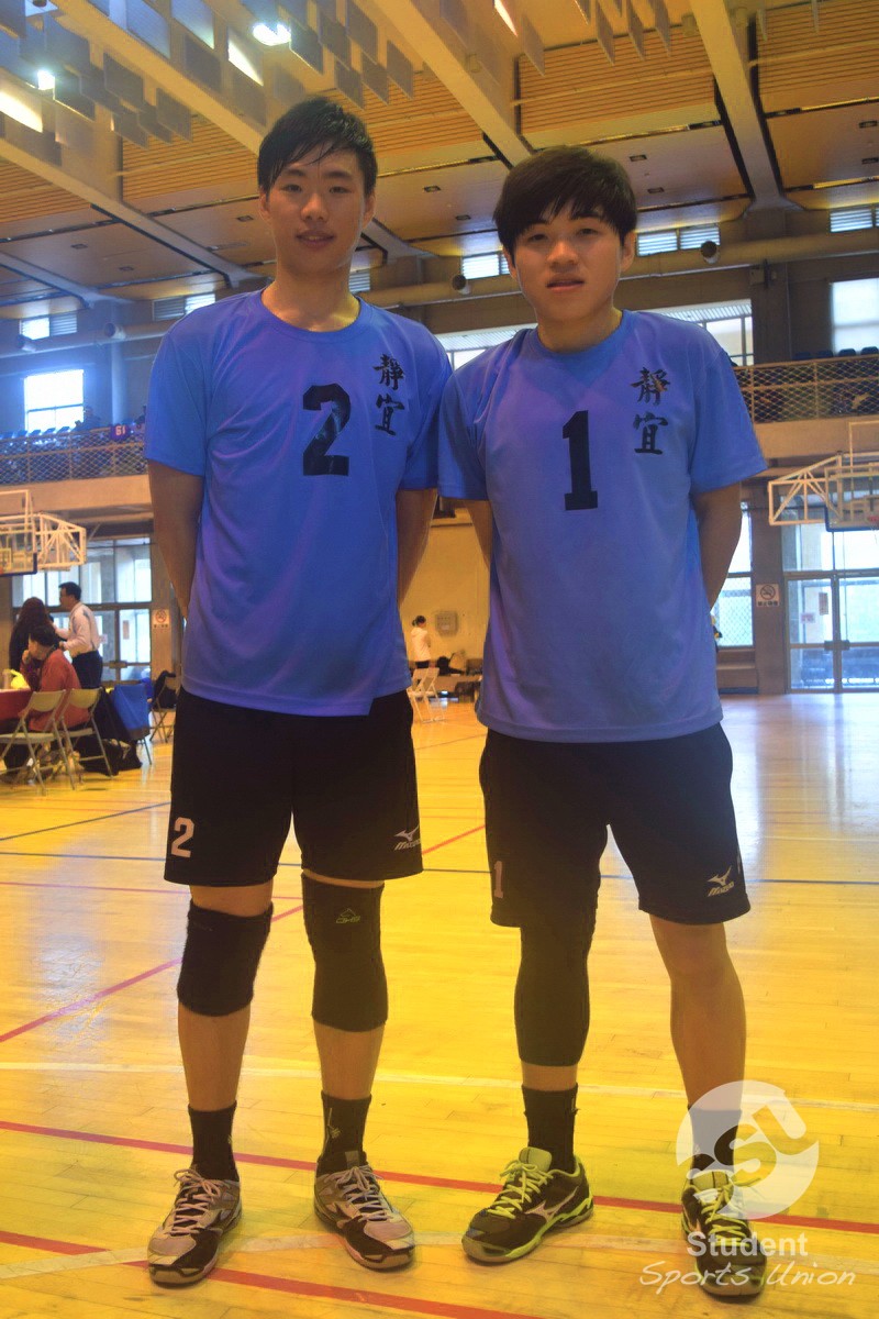 靜宜陳俊丞(左)的穩定得分加上隊長張文朧(右)的防守,是球隊勝利的關鍵。攝/游本源