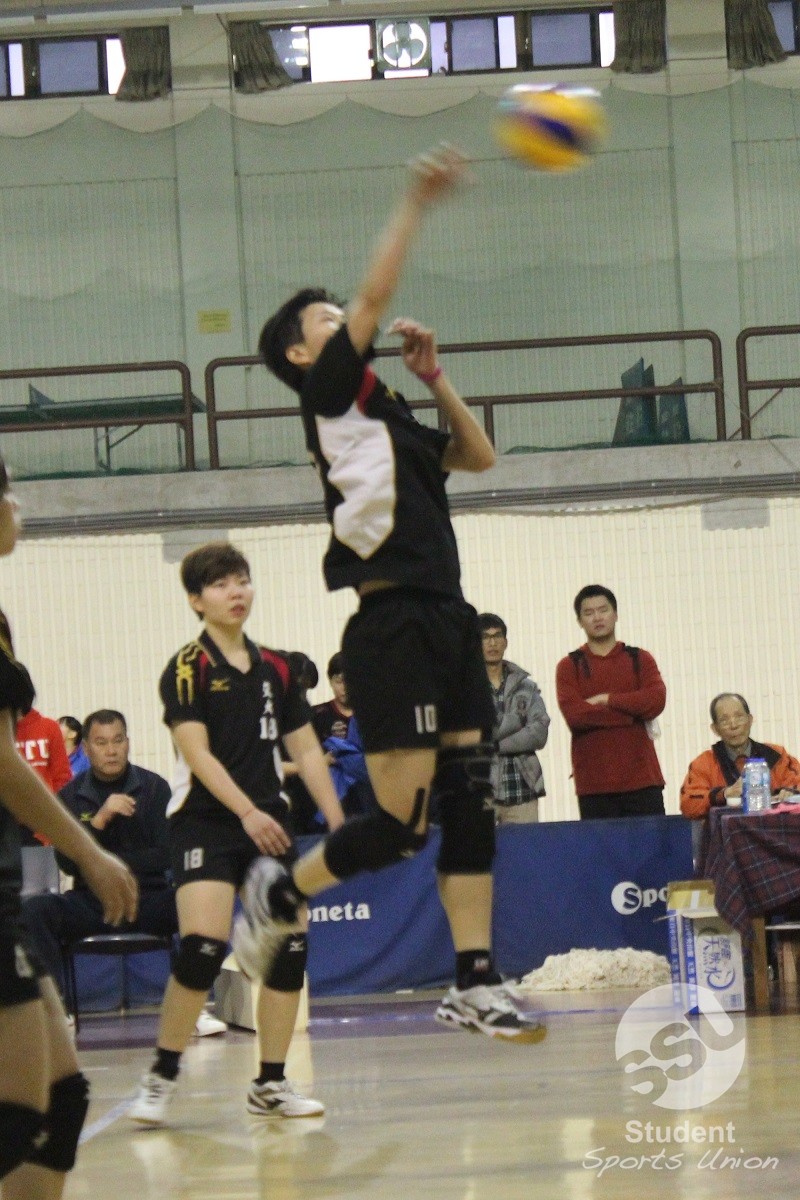 比賽一開始,雙方各有攻勢,後來交大拉出一波5:0的小高潮,士氣大振,殺球及吊小球並用,以25:17拿下首局。不過第二局交大失誤偏多,發球不穩定,讓中央有機可趁,迅速以25:9扳回一城。