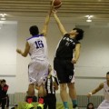 103學年度大專籃球聯賽公開男二級第四區分區決賽今(3日)於大同技術學院展開第三天賽程,最後一場由遠東科技大學對上環球科技大學,兩隊比數互咬,上半場結束雙方僅一分差距,而關鍵第四節環球靠著隊長賴聖文, 瀏覽次數:3301